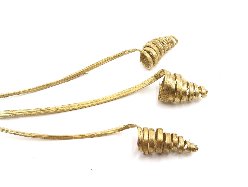 Zlatá spirála z přírodního materiálu je vhodná jako nápaditá přízdoba do vazeb nebo aranžmá ve slavnostním stylu. Vhodná i pro venkovní použití například do truhlíků